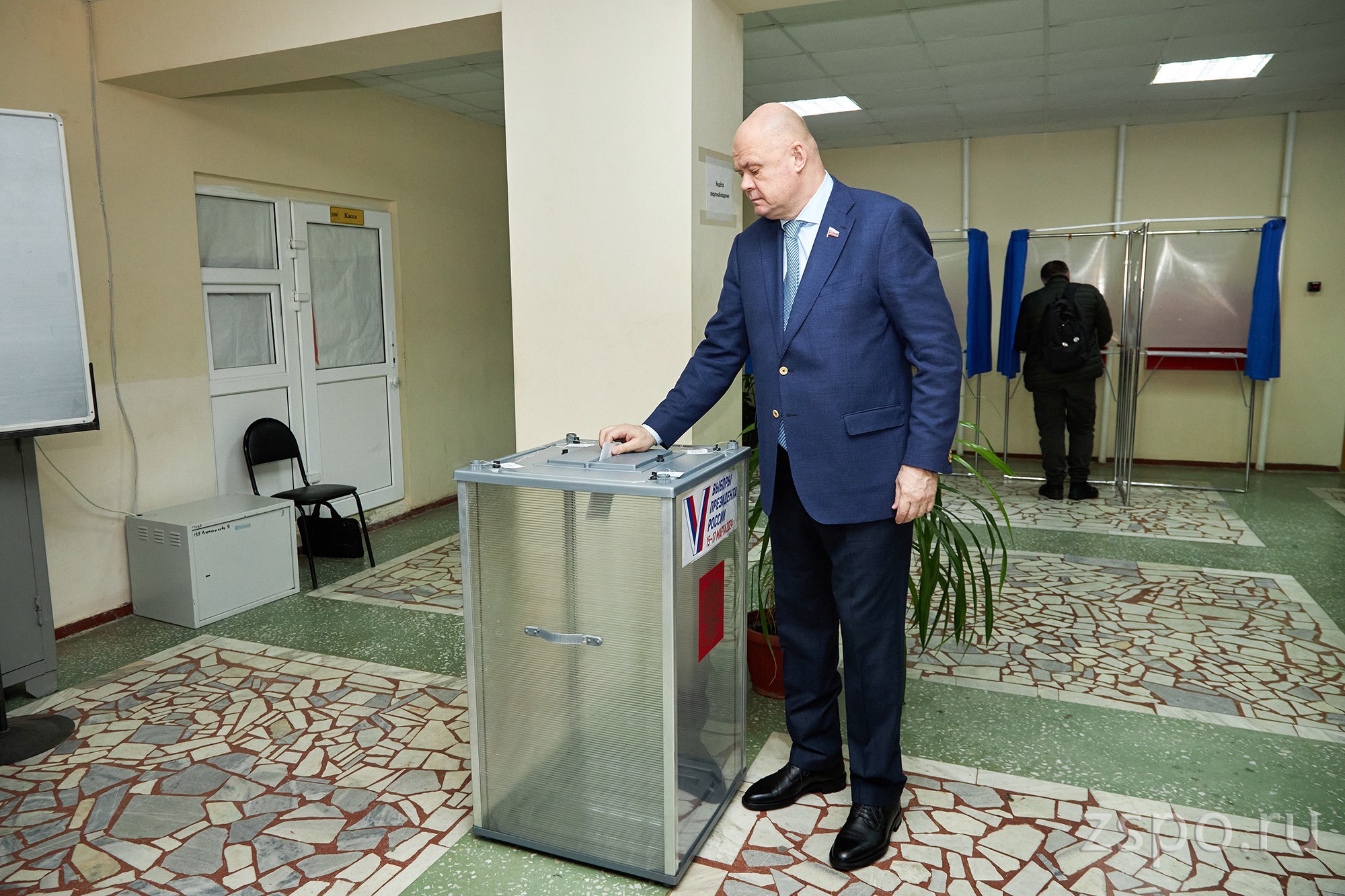 Председатель регионального парламента Вадим Супиков проголосовал на избирательном участке № 155 утром в пятницу, 15 марта.