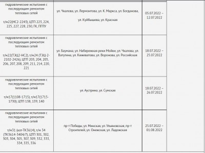 В период с 18 по 24 июля ремонт проведут на ТЭЦ-2. В это время без воды останутся улицы Калинина, Ватутина, Кижеватова, Краснова, Воронова, Российская, Красная Горка, Богданова, Набережная реки Мойки, Гоголя, Свердлова, Чкалова, Красная, Куйбышева, Лермонтова, Лобачевского, Металлистов, Терновского, Бурмистрова, Маршала Крылова. Кроме того, горячего водоснабжения не будет в ГБУЗ КИМ на улице Ново-Тамбовская, 9, в больнице имени Бурденко, в областной больнице имени Евграфова, а также в больнице № 5 на улице Краснова, 60.