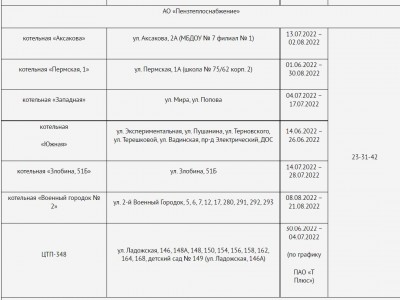 В мэрии отмечают, что из-за большого объема работ сроки отключения могут быть скорректированы. По всем вопросам горожане могут обратиться по телефону: 63-10-05.
