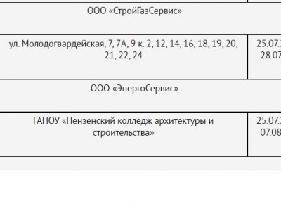 Как сообщают в пресс-службе городской администрации, в период с 4 июля по 10 июля специалисты проведут ремонтные работы на ТЭЦ-1. В это время воды не будет по следующим адресам: проспект Победы, а также улицы 8 Марта, Карпинского, Коммунистическая, Ворошилова, Шевченко, Пугачева, Бекешская, Суворова, Пушкина, Кулакова, Бакунина, Ставского, Захарова, Космодемьянской, Плеханова, Луначарского, Толстого, Дзержинского, Ухтомского, Жемчужная, Герцена, Пролетарская, Ленина, Крупской, Леонова, Циолковского, Гагарина, Кулибина, Ударная, Фурманова, Аустрина, Можайского, Заводская, Сумская, Депутатская, Кл. Цеткин, Дружбы, Медицинская, Чаадаева, Колхозная, Литвинова, Егорова, Саранская, Чапаева, Долгорукова, Московская, Володарского, Кирова, М Горького.