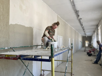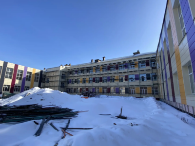 Сейчас в здании уже сделали стяжку пола на третьем этаже, заменили окна в коридорах на всех трех этажах, продолжают внутреннюю отделку и ремонт лестничных клеток. Фасад готов примерно на 80%, такой же объем работ выполнен на лестницах. Кроме того, на третьем этаже начали устанавливать пластиковые двери. В целом готовность объекта сейчас составляет 40%.