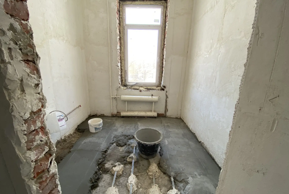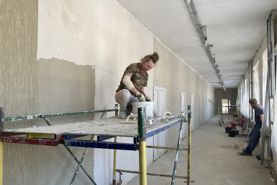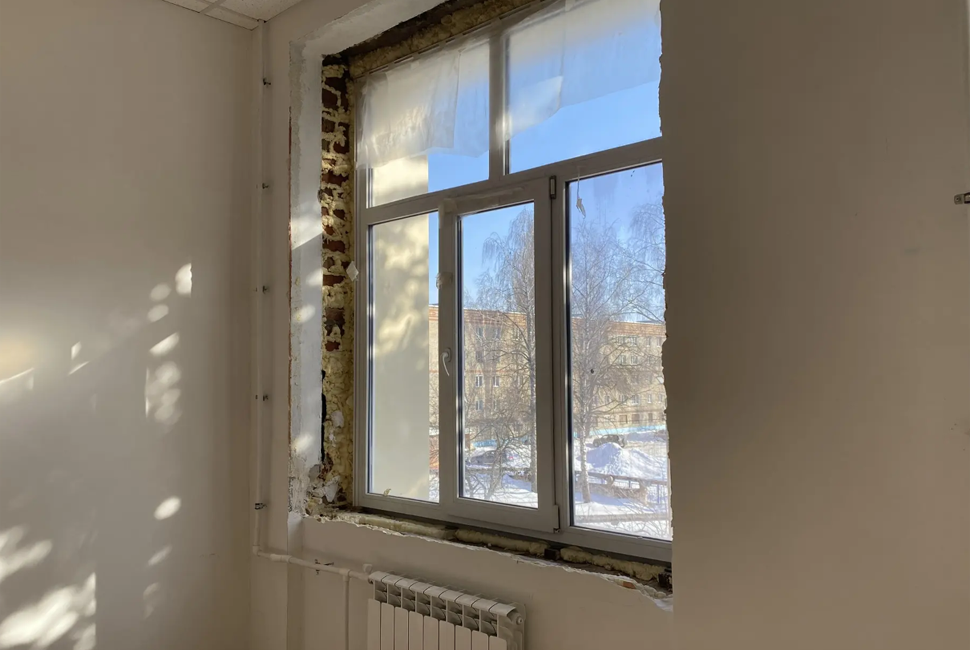 Сейчас в здании уже сделали стяжку пола на третьем этаже, заменили окна в коридорах на всех трех этажах, продолжают внутреннюю отделку и ремонт лестничных клеток. Фасад готов примерно на 80%, такой же объем работ выполнен на лестницах. Кроме того, на третьем этаже начали устанавливать пластиковые двери. В целом готовность объекта сейчас составляет 40%.