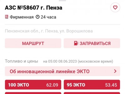 По состоянию на сегодняшний день, 8 июня, цены изменились следующим образом. Один литр 100 ЭКТО теперь стоит 62,09 рубля. За литр 92-ого придется заплатить 49,14 рубля. Один литр 95-ого стоит 53,45 рубля.
