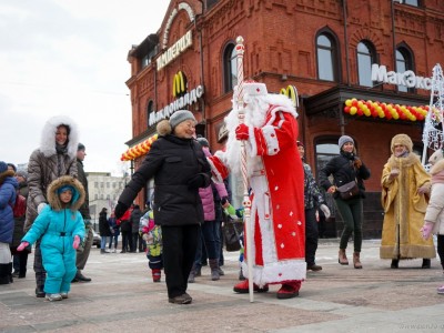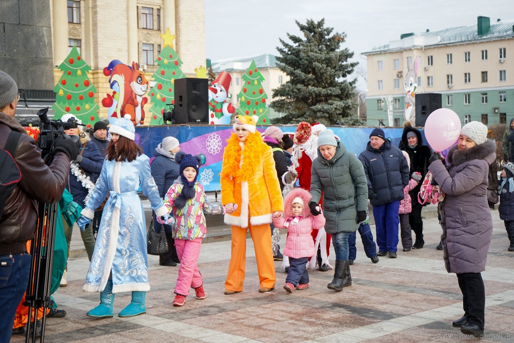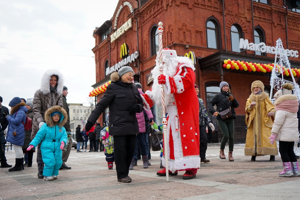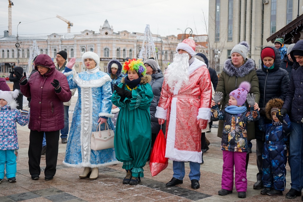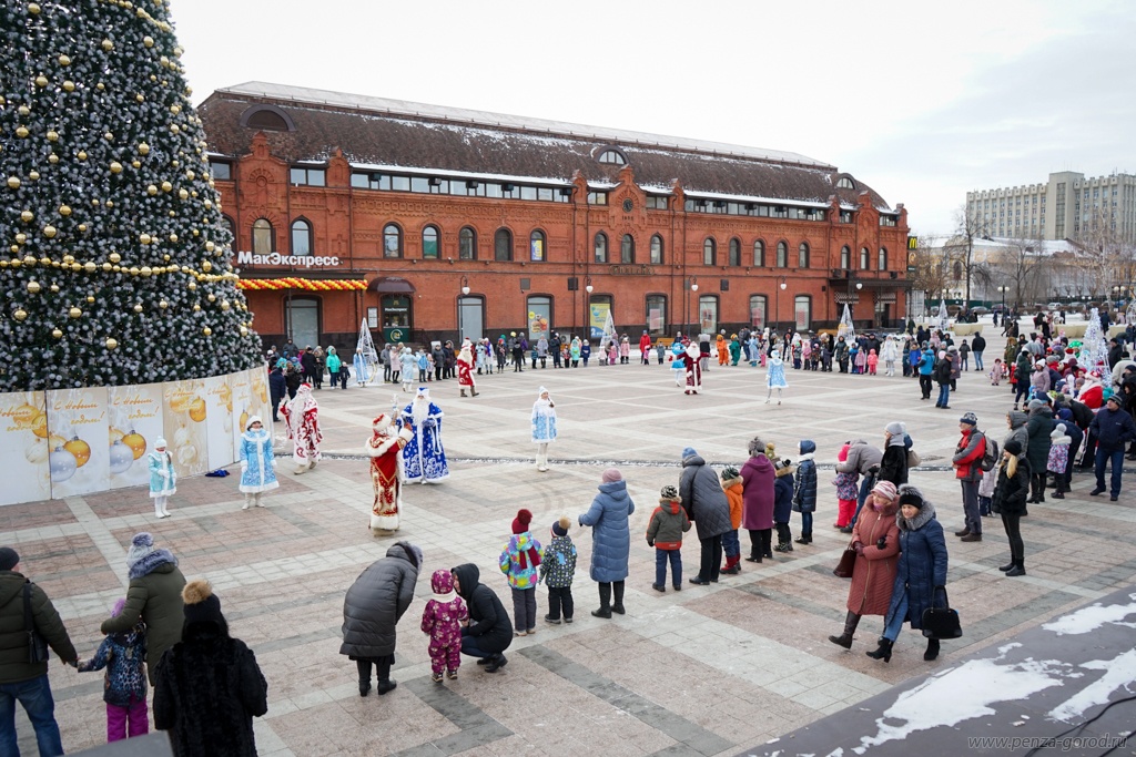 В минувшее воскресенье, 15 декабря, в центре Пензы прошло традиционное шествие Дедов Морозов. Дедушки в красных шубах прошли по Московской улице вниз к площади Ленина, где состоялось первое новогоднее мероприятие. Сказочные персонажи пели, плясали и водили хоровод вокруг елки.