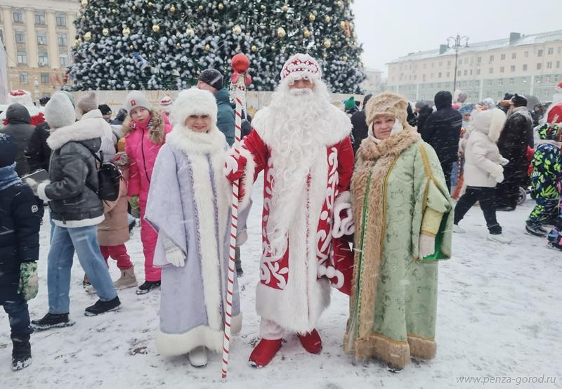 Весёлая процессия двинулась от Фонтанной площади по улице Московской к площади имени В.И. Ленина, где развернулось настоящее зимнее волшебство. Деды Морозы увлекли пензенцев всех возрастов в большой хоровод, зажгли огни на главной городской ёлке и торжественно открыли приемную главного зимнего волшебника.