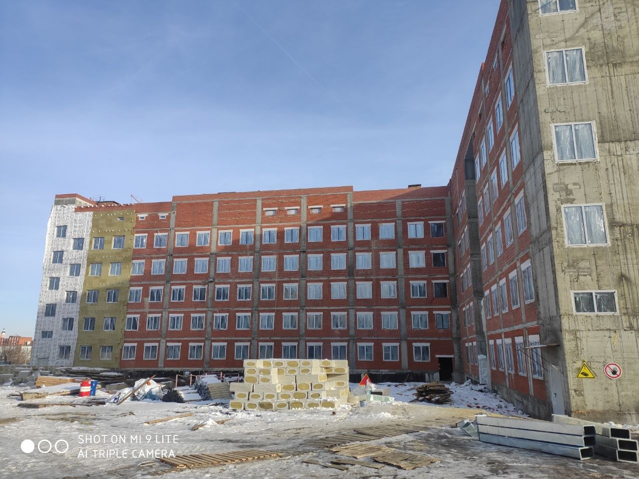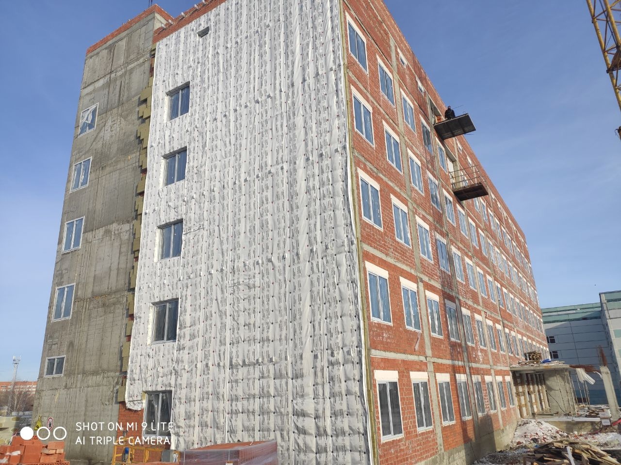 В данный момент продолжаются работы по устройству внутренних кирпичных перегородок технического этажа, внутренних пазогребневых перегородок 4-го и 5 этажа, перегородок из ГКЛ 1-го этажа. Рабочие штукатурят стены 3-го этажа, занимаются устройством полов подвального помещения из керамической плитки, а также, устройством стяжки 2-го и 3-го этажей, монтажем внутренних систем отопления, электроснабжения и вентиляции. Обустраивается кровля, ведутся фасадные работы, монтаж ограждения территории.