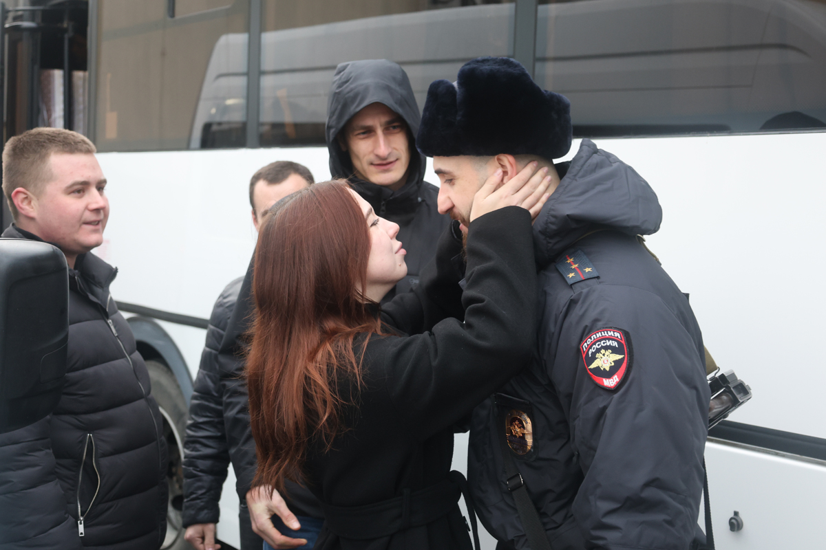 После нескольких минут трогательных прощаний колонна из полицейских машин, сопровождаемая экипажем ДПС, отправилась в путь. Впереди – непростая, но важная работа.