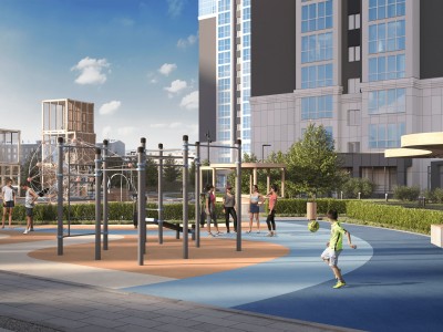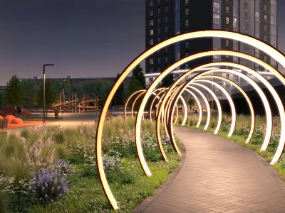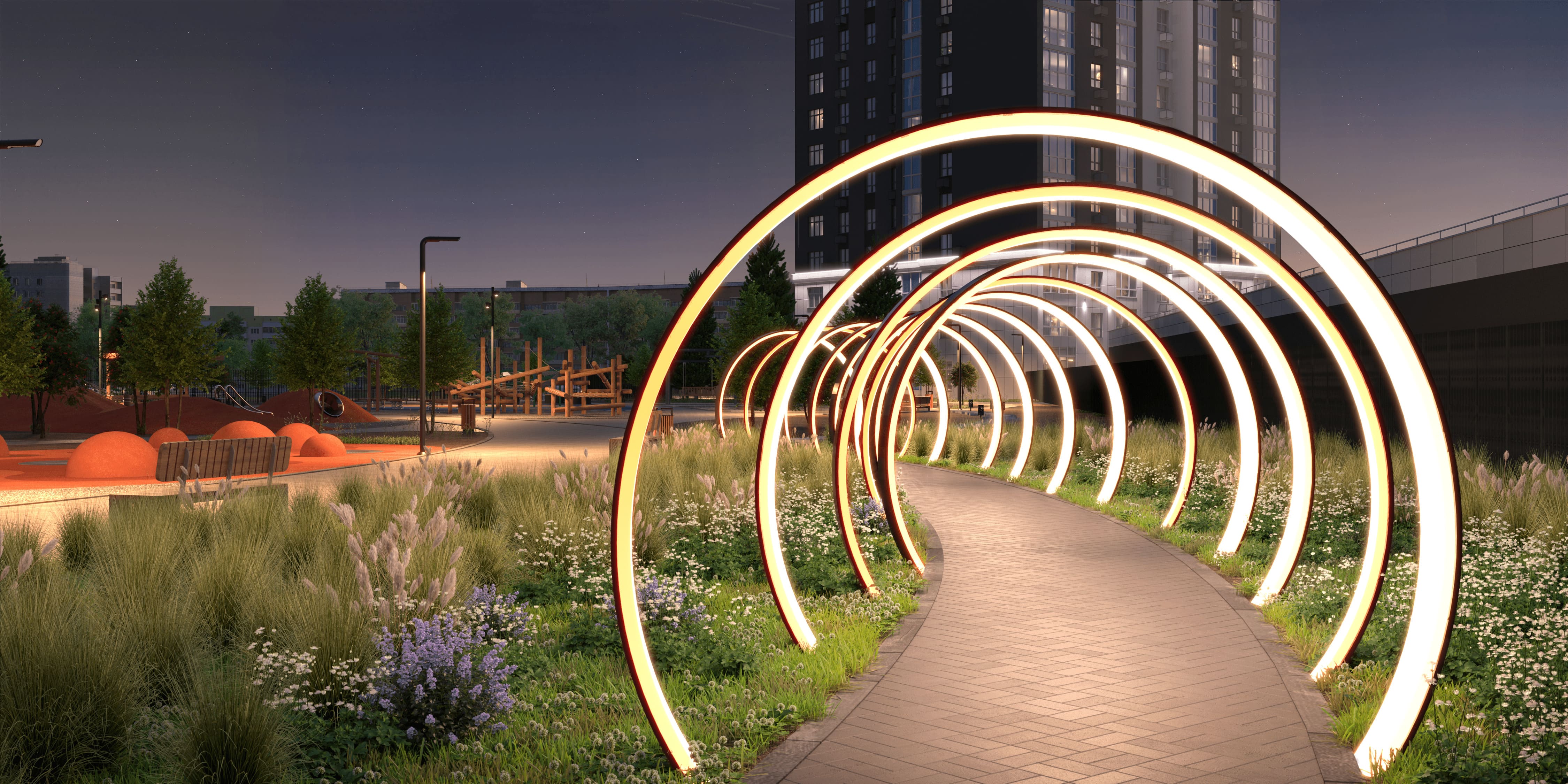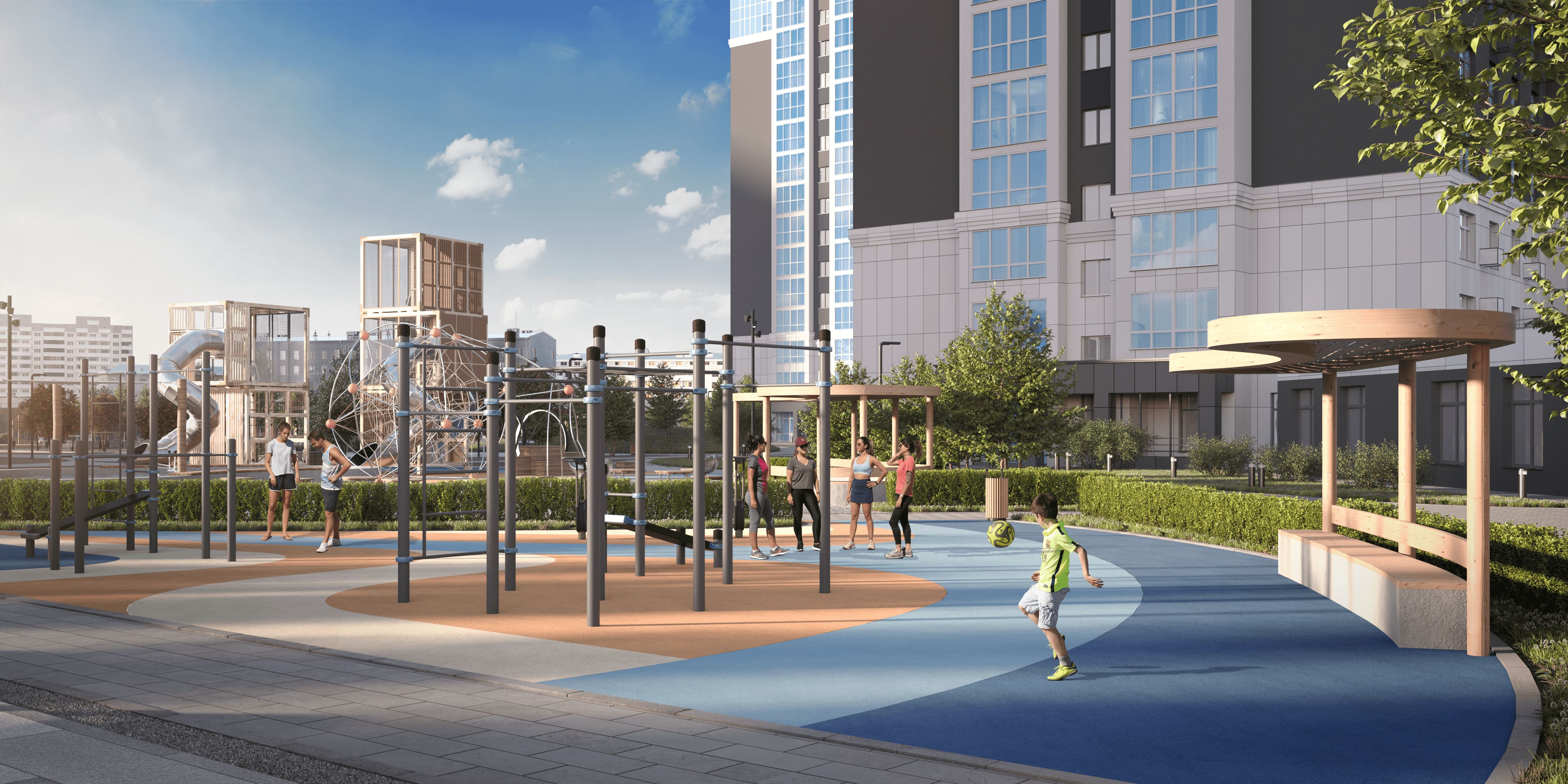 Для детей установят канатный комплекс, а еще качели, игровые островки, балансиры, песочницы с детским экскаватором. На игровой площадке батуты затеряются в «кратерном поле».