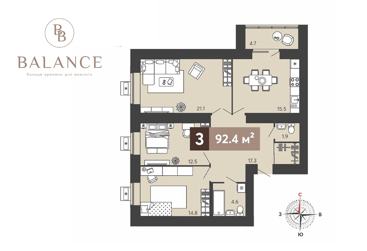 Создать по-настоящему комфортное и функциональное пространство для всех членов семьи — вот главная идея, которую строительный холдинг «Термодом» воплотил в трёхкомнатных квартирах жилого комплекса «Баланс». Это не просто метраж, а тщательно продуманная среда для жизни.