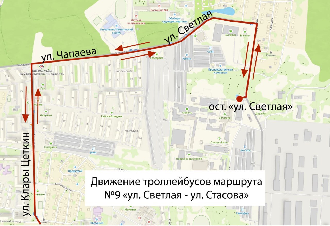 Троллейбусный маршрут №9 в Пензе продлили до улицы Светлой