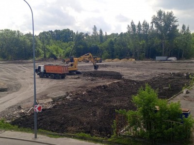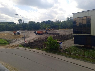 Участок долгое время пустовал, поскольку местность здесь болотистая. Инвестор взял на себя дополнительные расходы, чтобы облагородить территорию и сделать ее пригодной для строительства. В настоящий момент пространство очищено. Проведены земляные работы: завезено более 50 000 кубометров грунта. Стартовали работы по асфальтированию.
