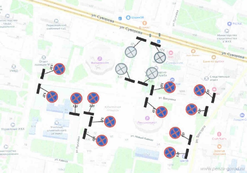 – Улица Суворова: от улицы Бекешской до Кулакова (кроме общественного транспорта до 16:30).