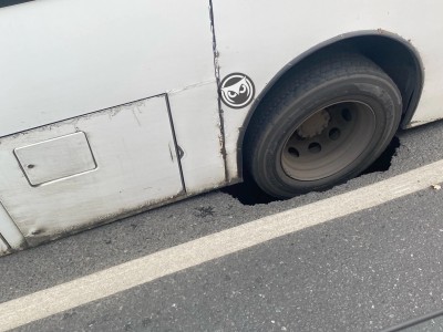 О случившемся рассказал один из очевидцев. Он опубликовал в соцсети несколько фото с места происшествия. На них видно автобус, чье заднее колесо плотно застряло в дыре, образовавшейся посреди проезжей части. Судя по снимкам, транспорт накренило на один бок. Скорее всего, без посторонней помощи вытащить автобус из ямы не удастся, так что автомобилистам стоит подготовиться к пробкам на данном участке дороги.
