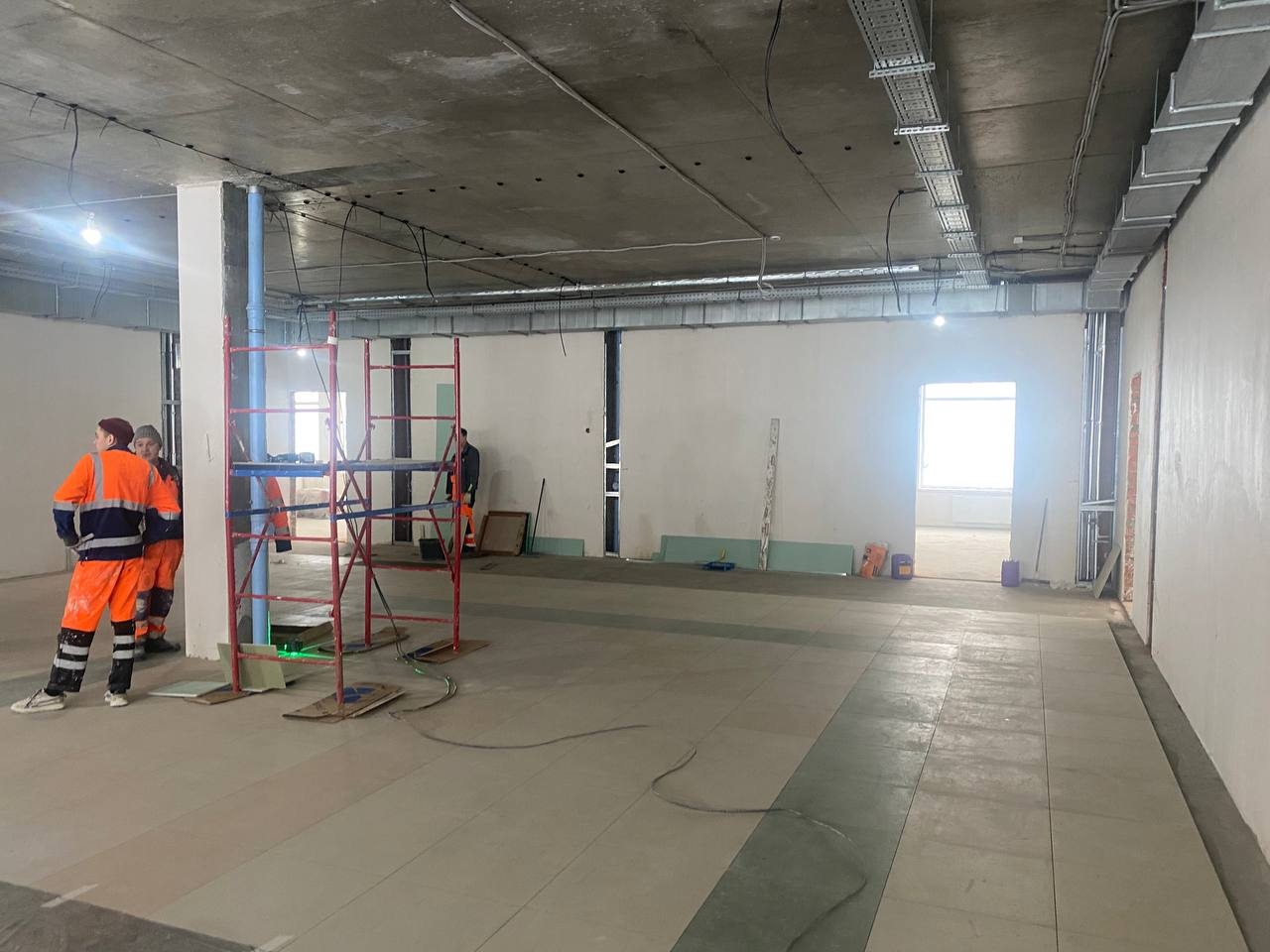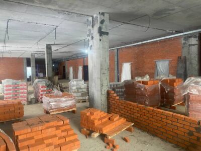 Параллельно ведутся монолитные работы, устанавливаются оконные блоки, возводятся внешние стены из газобетонных блоков и внутренние перегородки из кирпича. В двух корпусах уже подключено отопление, что позволило начать отделочные работы: штукатурку стен, устройство стяжки и укладку плитки.