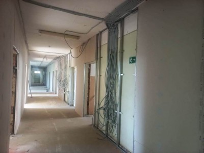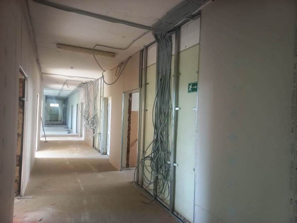 Сейчас подрядчик завершил демонтажные работы, залил стяжку пола на трёх этажах и установил систему электроснабжения на втором этаже. Начаты работы по отделке стен на этом же этаже.