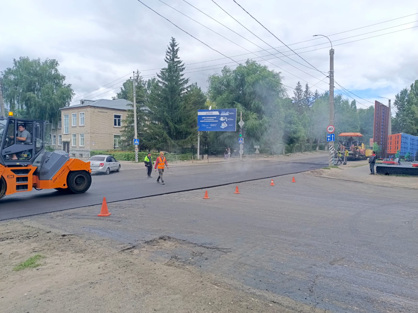 Так, в начале этой недели подрядчик занимался асфальтированием и обустройством тротуаров на участке от улицы Гагарина до Хлебокомбината.