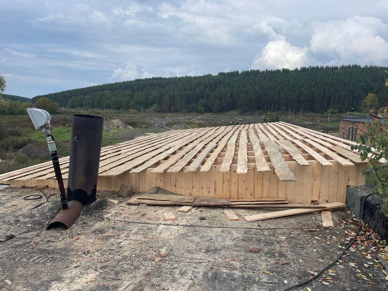 В настоящее время окончено обустройство обрешетки под скатную кровлю приюта для содержания бездомных собак.