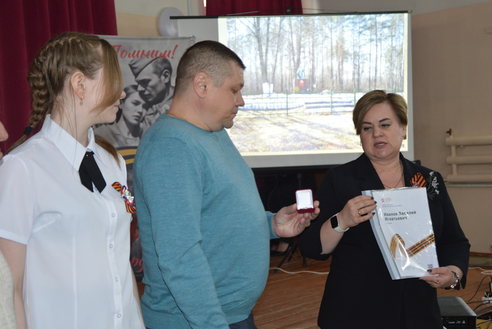 В Кузнецке состоялась торжественная церемония передачи медали «За отвагу» родным Василия Иванова, красноармейца, погибшего в Белоруссии в 1944 году. Награду, найденную поисковиками в Орловской области, вручила руководитель Пензенского регионального отделения «Поисковое движение России» Лариса Казакова.