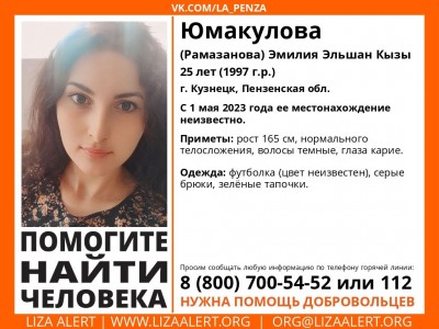 В Кузнецке пропала 25-летняя Эмилия Эльшан Кызы (Рамазанова). Она перестала выходить на связь с родными 1 мая.