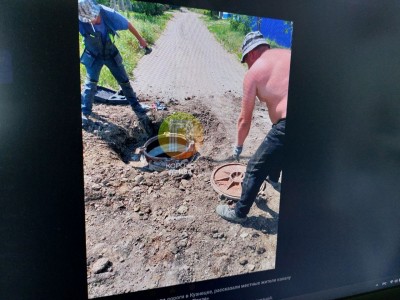 В одном из телеграм-каналов появилось фото, на котором запечатлена не асфальтированная дорога и рабочие, занимающиеся установкой колодца прямо посреди этой дороги.