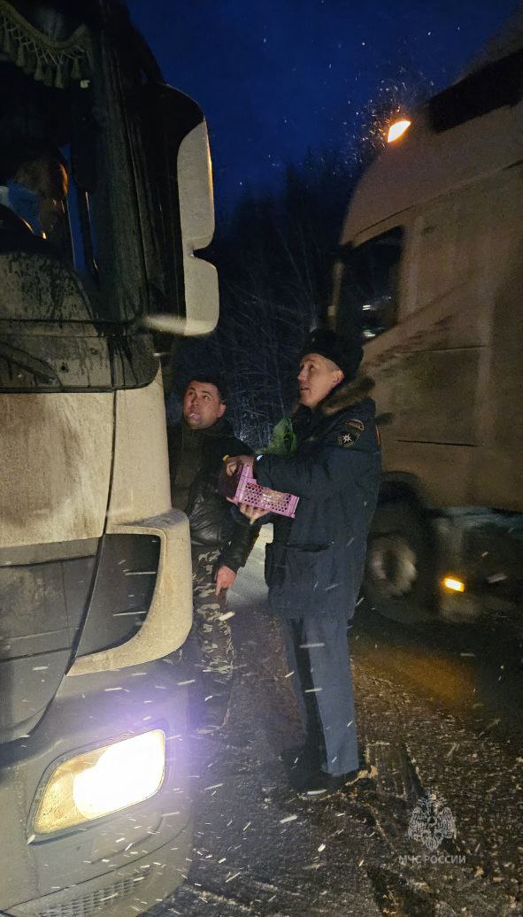 Как сообщают в региональном МЧС, в настоящее время организован подвоз воды и еды для водителей, стоящих в пробке на трассе М5 «Урал».