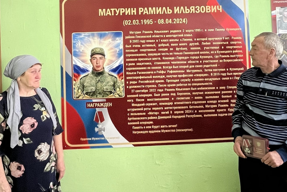 В Кузнецком многопрофильном колледже 18 марта прошло торжественное открытие «Парты Героя». Как сообщили в Министерстве образования Пензенской области, ее посвятили выпускнику учебного заведения Рамилю Ильязовичу Матурину, который погиб в ходе специальной военной операции и был посмертно награжден Орденом Мужества.