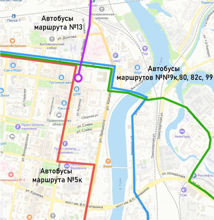 Маршруты №№ 80, 82с, 99: с ул. Суворова автобусы будут следовать по улицам Урицкого — Бакунина и далее по маршрутам в обоих направлениях.