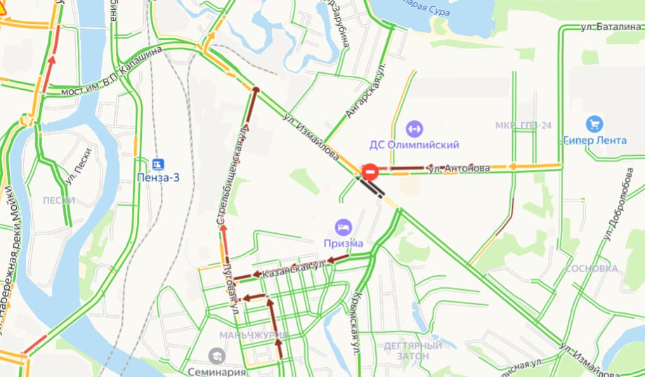 Микрорайон ГПЗ второй день существует в условиях глобальных пробок. Причиной стало сокращение полос движения в районе перекрестка Антонова и Измайлова, а также полная блокировка движения в сторону Ахун. Жителям лесного микрорайона полностью перекрыли путь в центр через Измайлова.