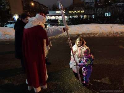 Что примечательно, вместе с чиновниками обойти улицы решил Дед Мороз. По пути следования он угощал детей конфетами, а также напомнил жителям, что удачу в предстоящем году можно привлечь, украсив свой дом или место работы.