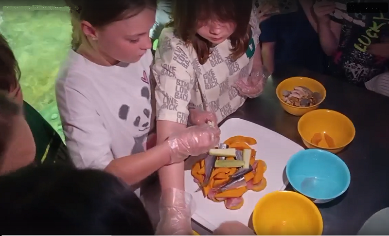 «Тут и кусочки манго, и яблоко, овощи и свежая рыбка – надеюсь, выдрочкам понравится», – поделилась одна из юных кулинаров.