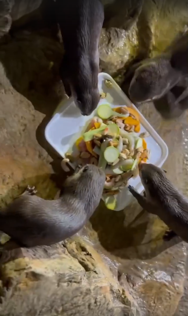 Надежды оправдались: выдры с огромным удовольствием умяли угощение. От торта в считанные минуты остались только сладкие воспоминания.