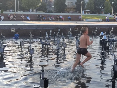 Жара доканала жителей областного центра, спасаясь от нее горожане даже решили залезть в полуосушенный светомузыкальный фонтан. Особенно радостно такую затею восприняли дети.