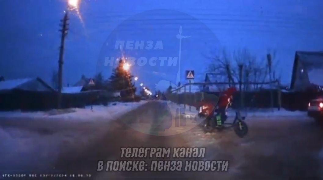 В Пензе доставщик еды на самокате едва не попал в ДТП на обледенелой дороге