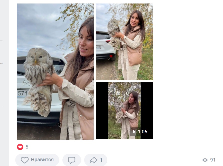 В другом посте девушка рассказала, что спасла птицу от стаи ворон и отнесла ее к ветеринару.