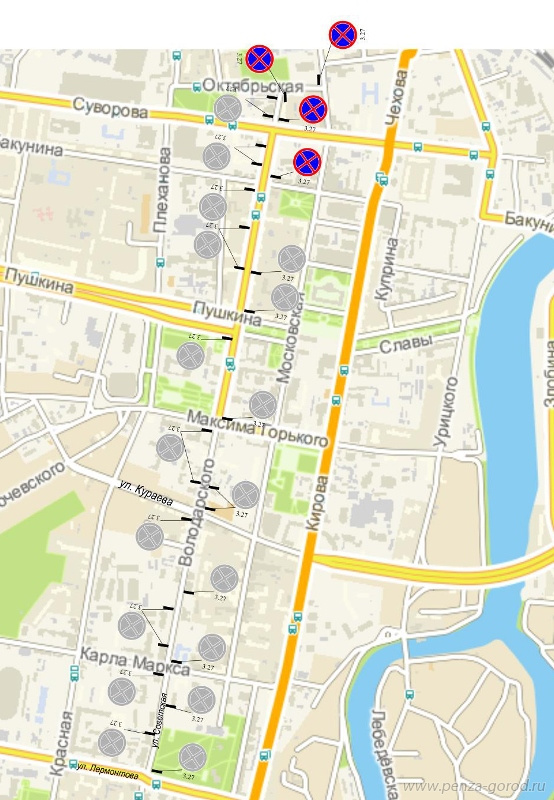 Припарковаться нельзя будет на улице Советской от Лермонтова до Карла Маркса, на улице Володарского от Карла Маркса до Октябрьской, а также на улице Октябрьской от Володарского до Московской.