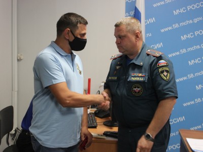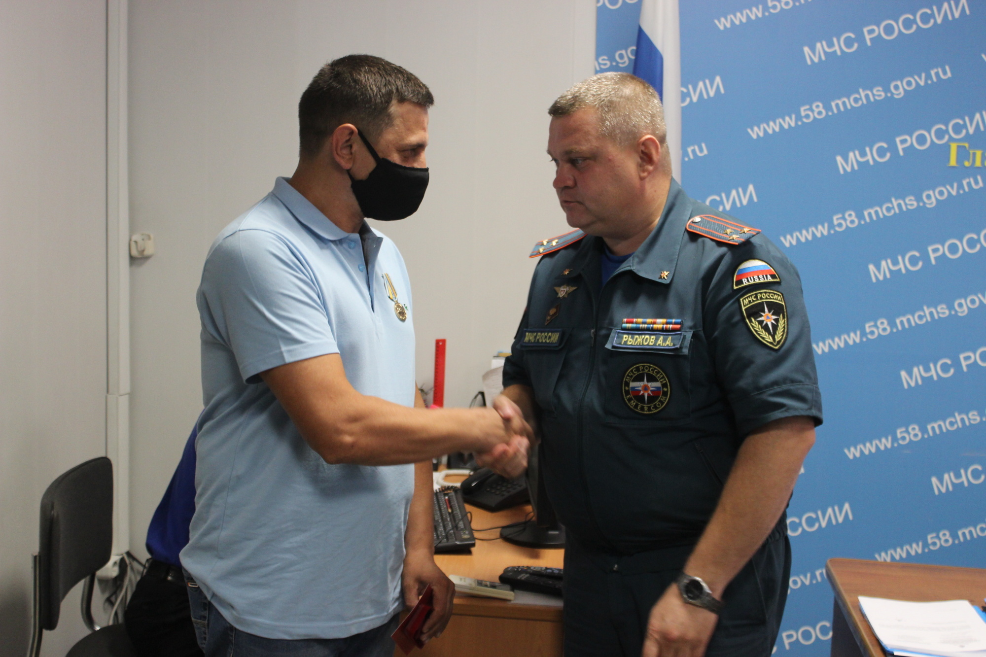 Сегодня, 10 августа, в главном управлении МЧС по Пензенской области прошло награждение Андрея Захарова. Врио начальника управления Алексей Рыжов вручил пензенцу медаль МЧС России «За спасение погибающих на водах».