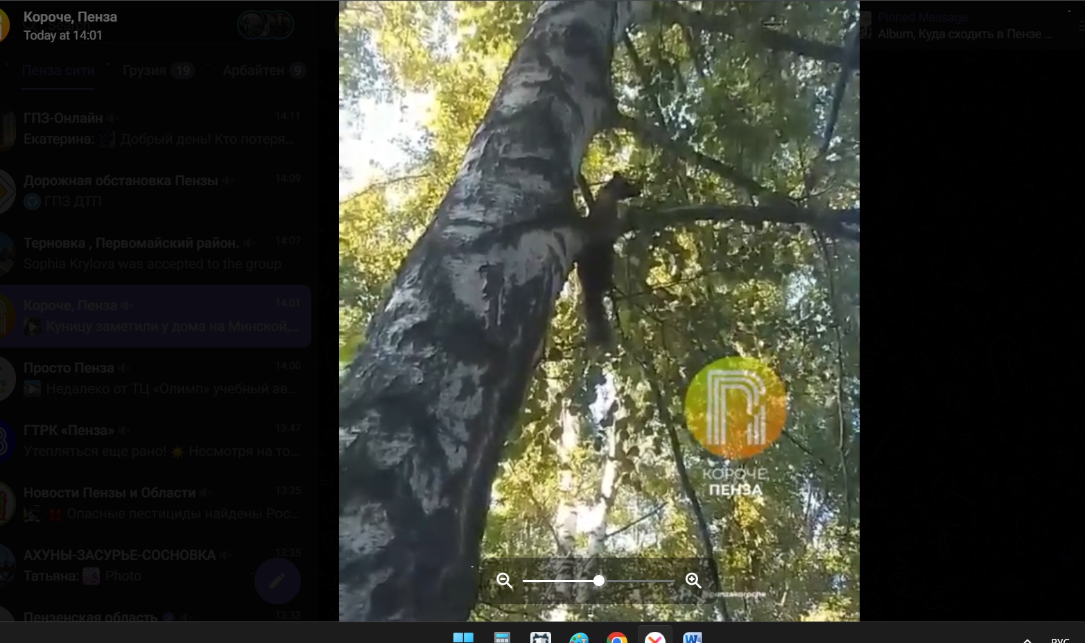 В одном из пензенских телеграм-каналов появилось видео, сделанное горожанами. На записи можно увидеть небольшого пушистого зверька, забравшегося на дерево.
