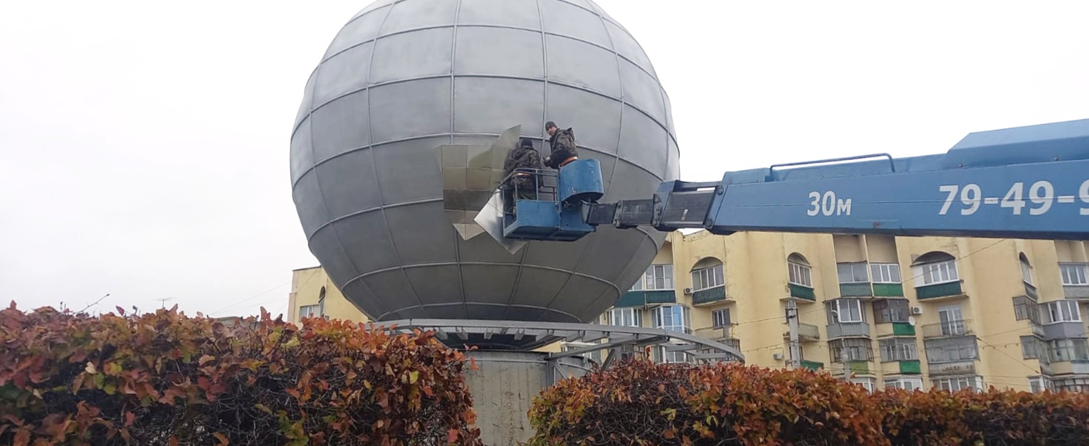 Сегодня, 30 октября, подрядчик приступил к обновлению одной из визитных карточек Пензы. Специалисты начали возвращать материки на монумент «Глобус».