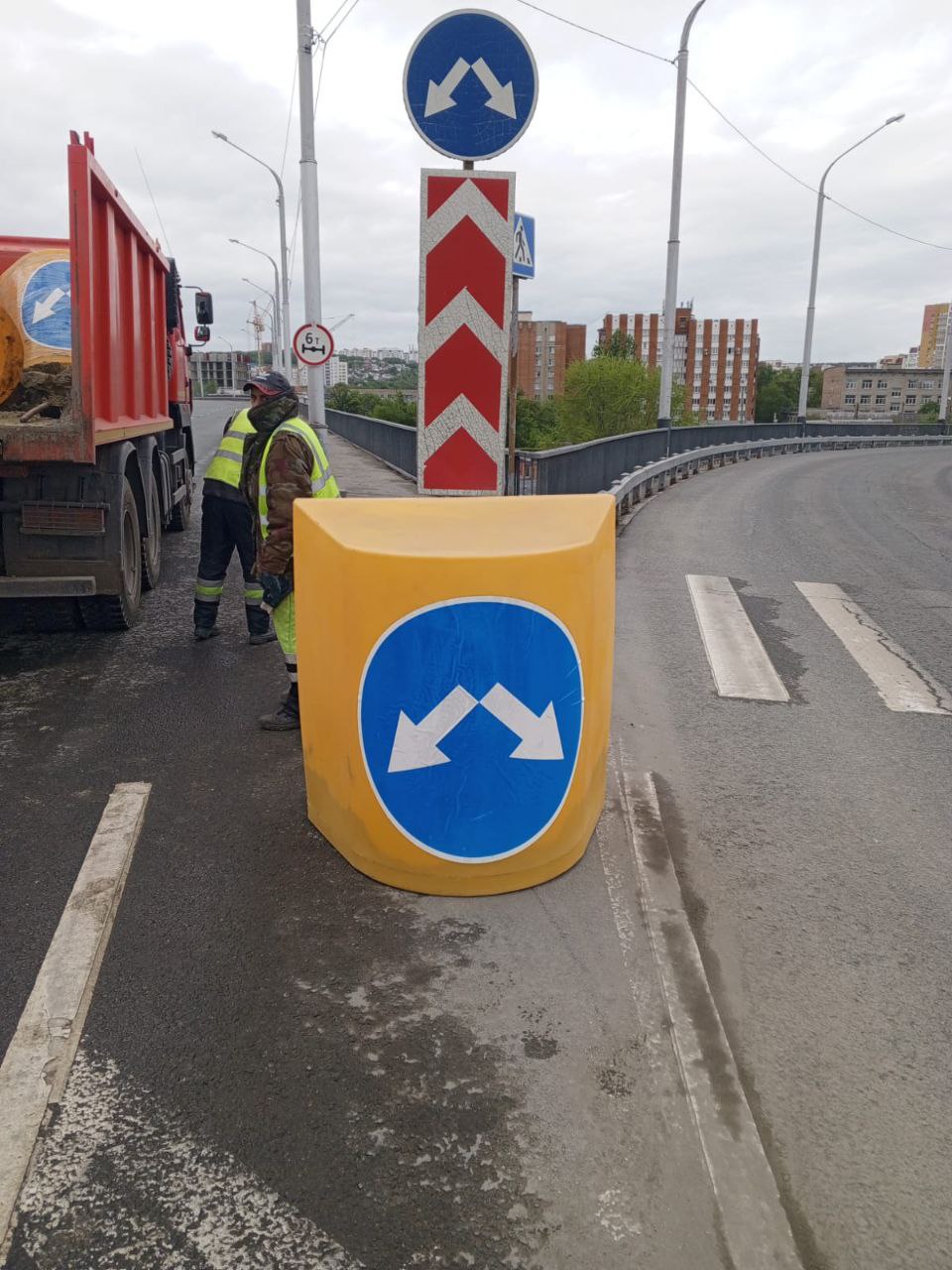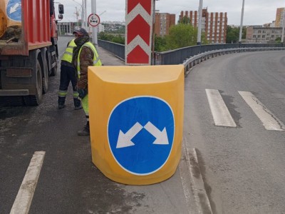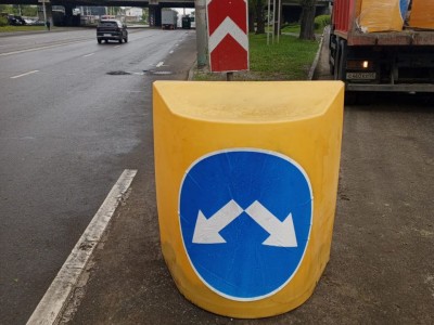 Дорожные знаки имеют яркую окраску и световозвращающую маску. Их будет хорошо заметно, благодаря чему на дорогах снизится число аварий. Кроме того, буферы нужны для разграничения потоков движения.