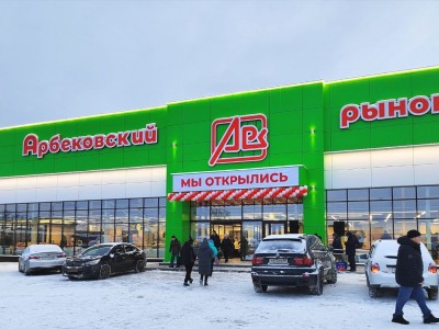Сейчас продовольственный рынок Арбековский – это 1500 квадратных метров торговых площадей. Общий объем инвестиций в проект по строительству рынка составил 212 млн. рублей. Все продумано и организовано для удобства продавцов и покупателей, есть просторная парковка.