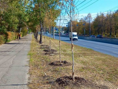 По словам главы города, на проспекте Победы, 75 начали высаживать 25 берез. Специалисты сажают крупномеры возрастом не менее 6 лет, которые достигли 3-4 метров в высоту.