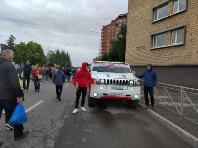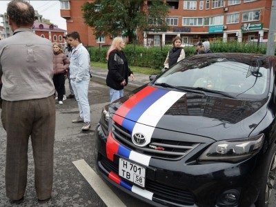 Кто-то по случаю праздника даже раскрасил авто в цвета триколора.