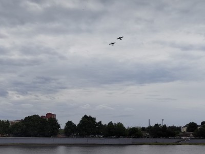 В небе горожане видят два самолета, которые, вероятно, вылетели на разведку обстановки.