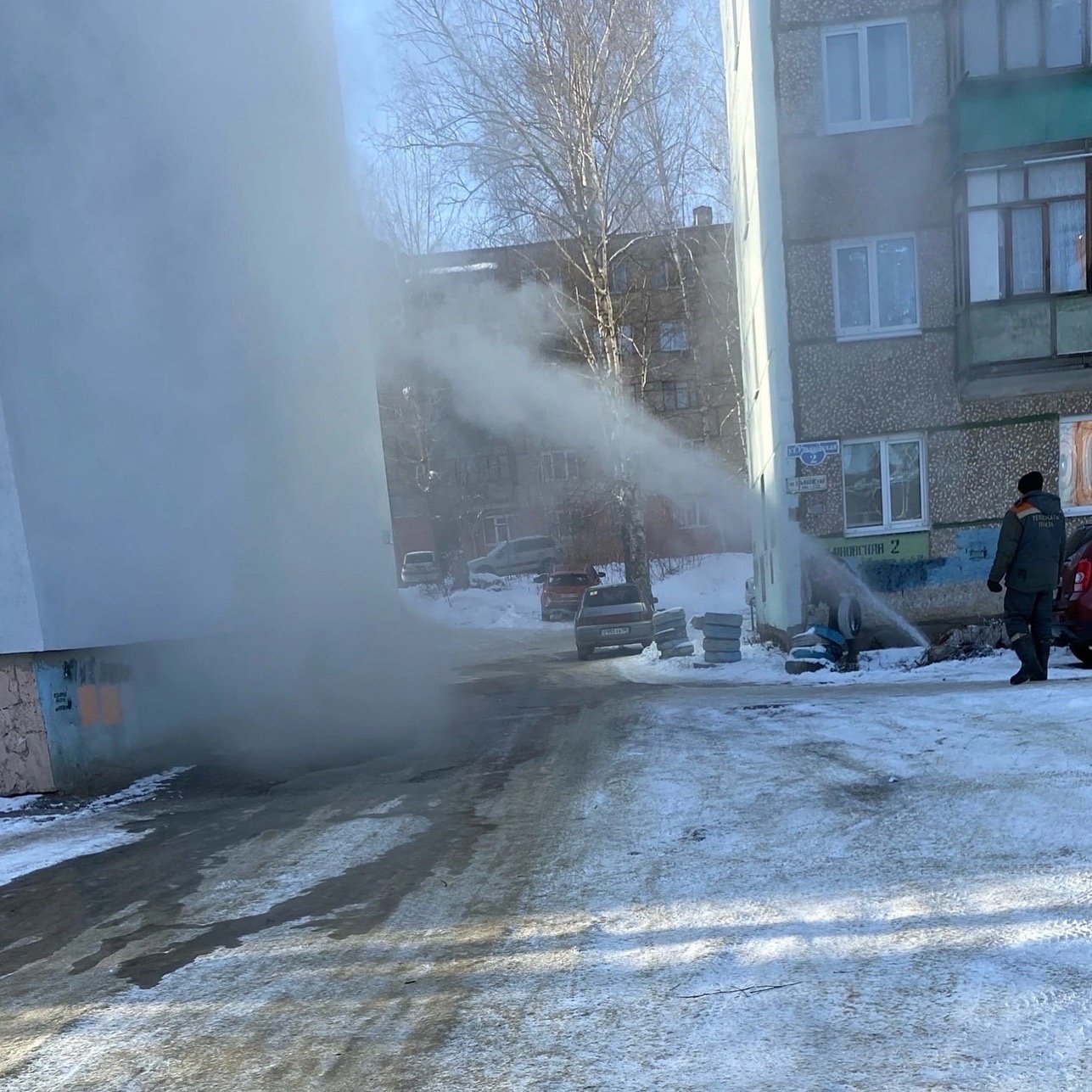 О случившемся рассказал один из очевидцев. Он опубликовал в соцсети фото, на котором запечатлел фонтан воды, бьющий откуда-то из-под земли. По словам автора поста, трубу прорвало у дома №2.