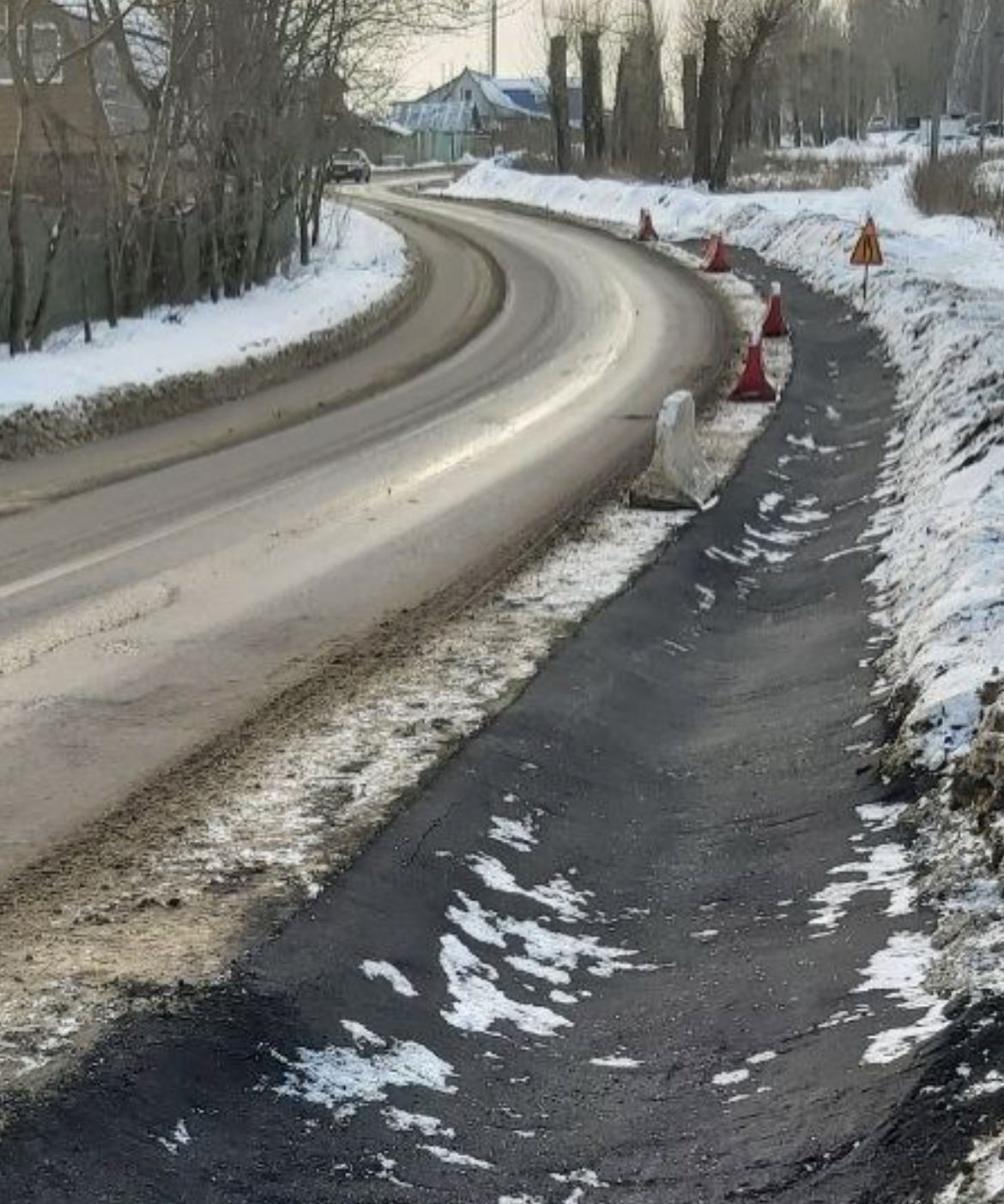 Вдоль проезжей части появился асфальтобетонный лоток протяженностью 290 метров. Кроме того, на заездах были обустроены три водопереливные трубы и смотровая камера с дождеприемным колодцем.