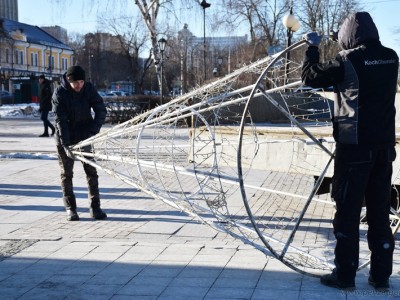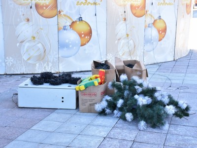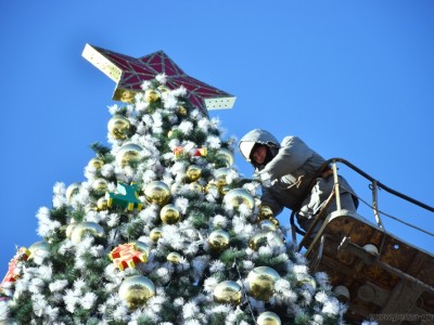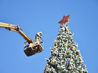 Во вторник, 21 января, в Пензе начался демонтаж главной новогодней ёлки на площади имени В.И. Ленина. Сотрудники МБУ «Пензавтодор» снимают с неё игрушки и гирлянды.