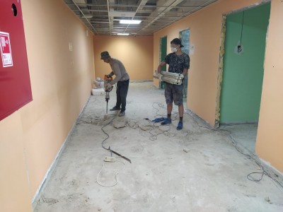 Специалисты уже начали приводить в порядок помещения гериатрического центра. Им предстоит заменить напольное покрытие, светильники и сантехнику. Также в здании будут заново покрашены стены.