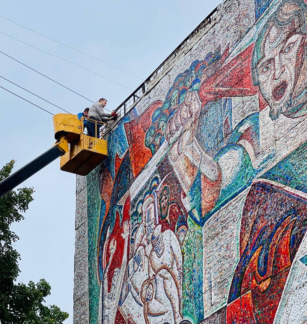 «Основные работы по монтажу недостающих элементов конструкции запланировали провести на следующей неделе. Чтобы защитить панно от влаги, сделаем над ним козырек и слив», – добавил Александр Басенко.