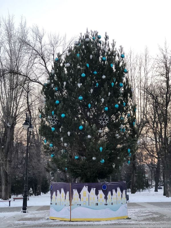 Как сообщают в пресс-службе администрации Пензы, высота дерева, привезенного из Сосновоборского района, составила около 8,5 метров. Его украсили 300 игрушками голубого и серебристого цвета. Вокруг символа Нового года установили небольшое ограждение с изображением ночного города.