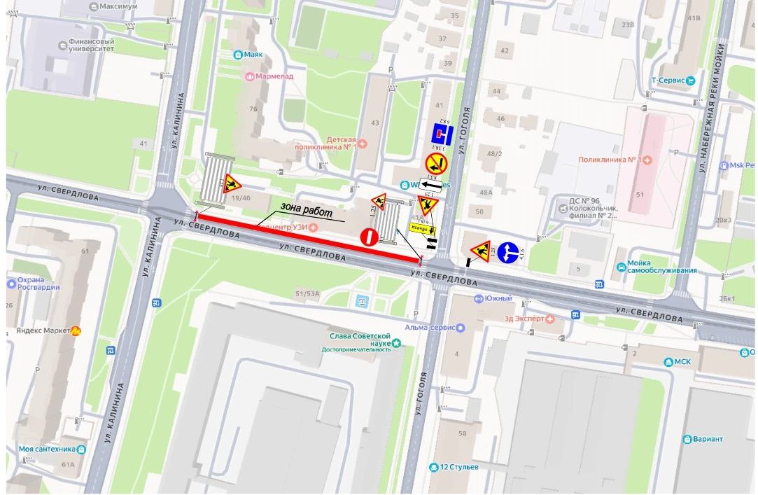 Ограничения вводятся на участке от улицы Калинина до улицы Гоголя. В ночное время с 22:00 21 февраля до 01:30 22 февраля будет закрыто движение в направлении микрорайона Терновка.